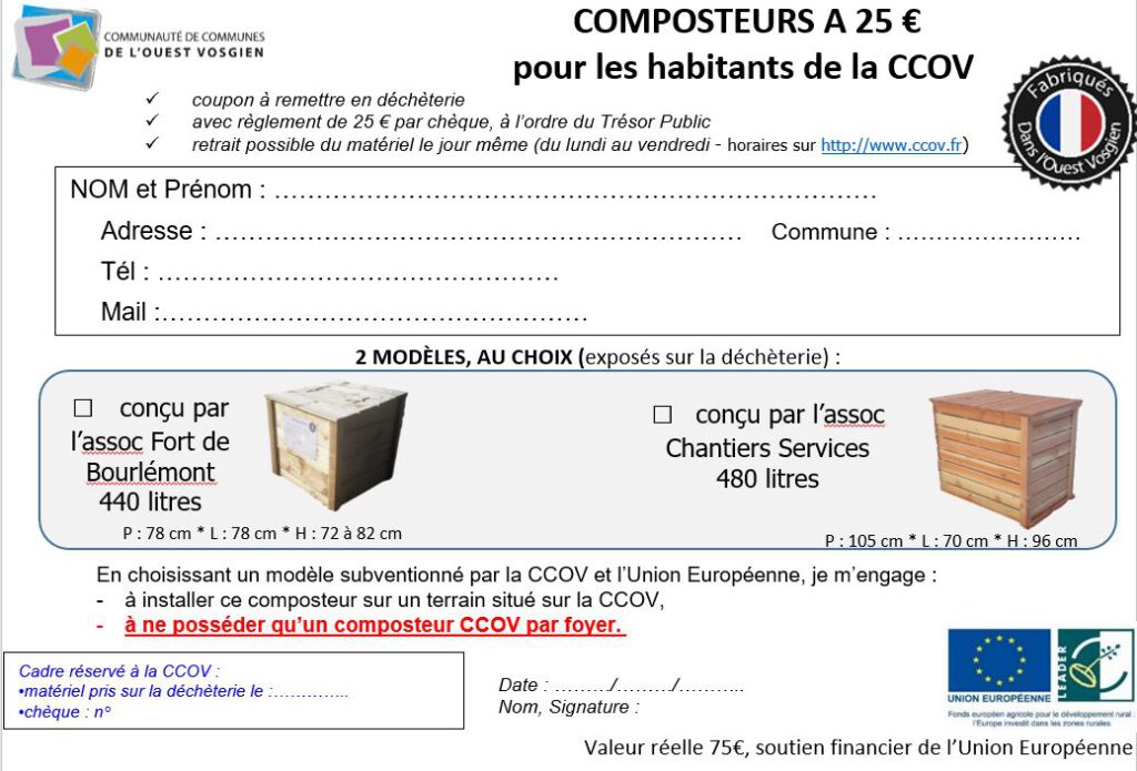 la Communauté de Communes de l’Ouest Vosgien vous propose l’acquisition d’un composteur en bois au tarif de 25€.