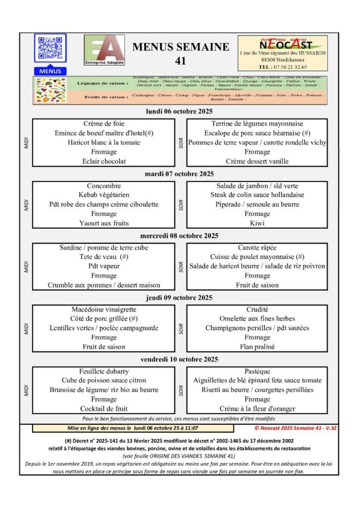 MENUS DU RESTAURANT SCOLAIRE DE L’ÎLE VERTE
