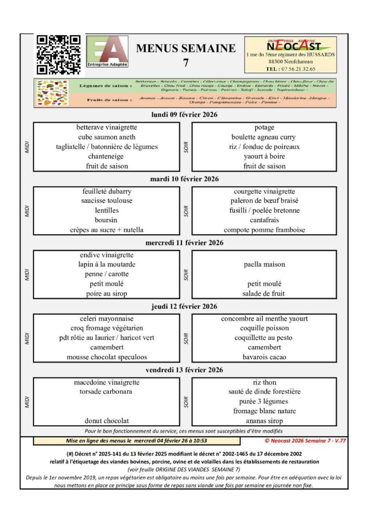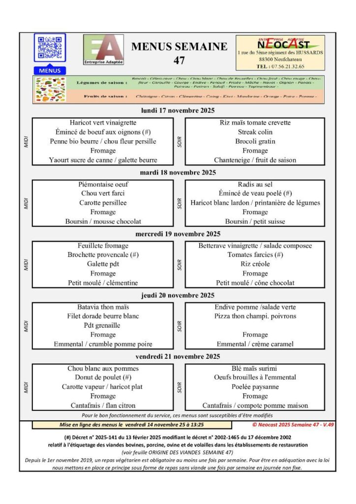 MENUS DU RESTAURANT SCOLAIRE DE L’ÎLE VERTE