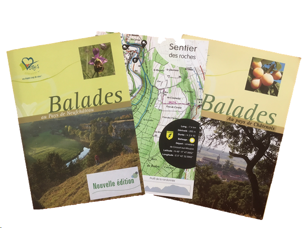 Partez sans plus attendre à la découverte des paysages et des lieux historiques remarquables de notre territoire grâce aux guides de randonnées “Balades au Pays de Neufchâteau” et “Balades aux Pays de Châtenois”.
