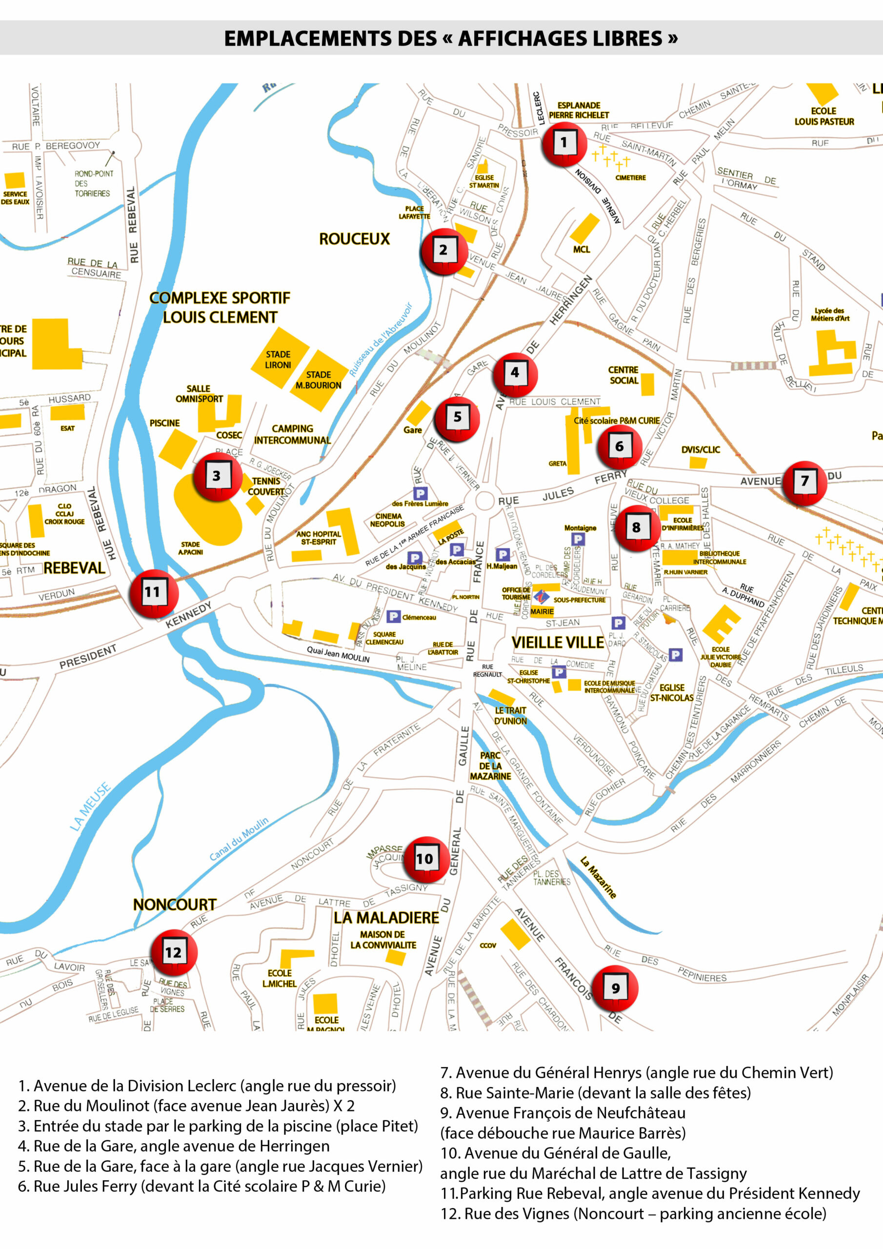 13 supports “d’affichage libre” sont installés dans différents quartiers de la Commune. Libres d’accès, ces panneaux sont à disposition de tous.